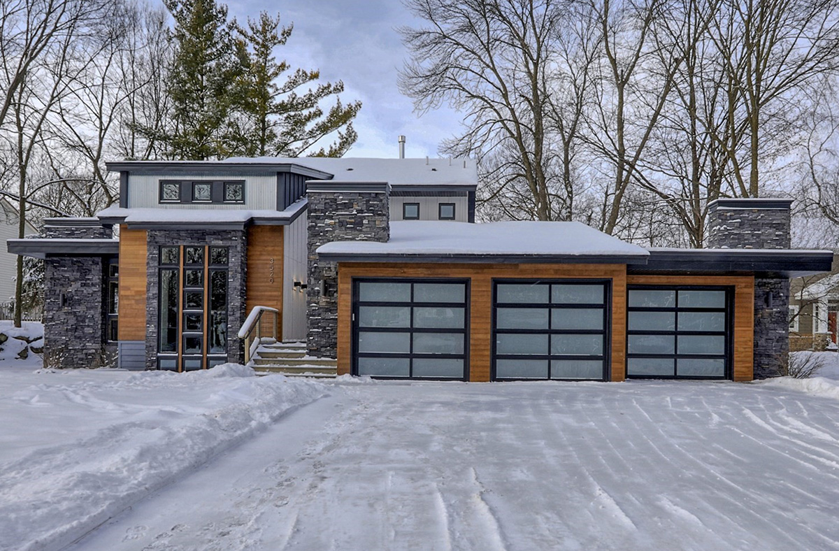 A stone veneer is a great way to complete a project with a defined look. By breaking up your exterior siding with a distinct colour and texture, you add personalization to an otherwise monotonous introduction to your home. A unique feature can be a simple accent wall with traditional river rock or base of modern stack stone.